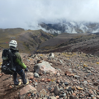 La neblina era espesa y la lluvia no había cesado del todo. Cada paso estaba cargado de incertidumbre. Al llegar a la zona conocida como los Laberintos, el terreno estaba cubierto de nieve y el hielo dificultaba cada movimiento. Aun así, seguimos adelante hasta alcanzar la base del glaciar Jamapa.
